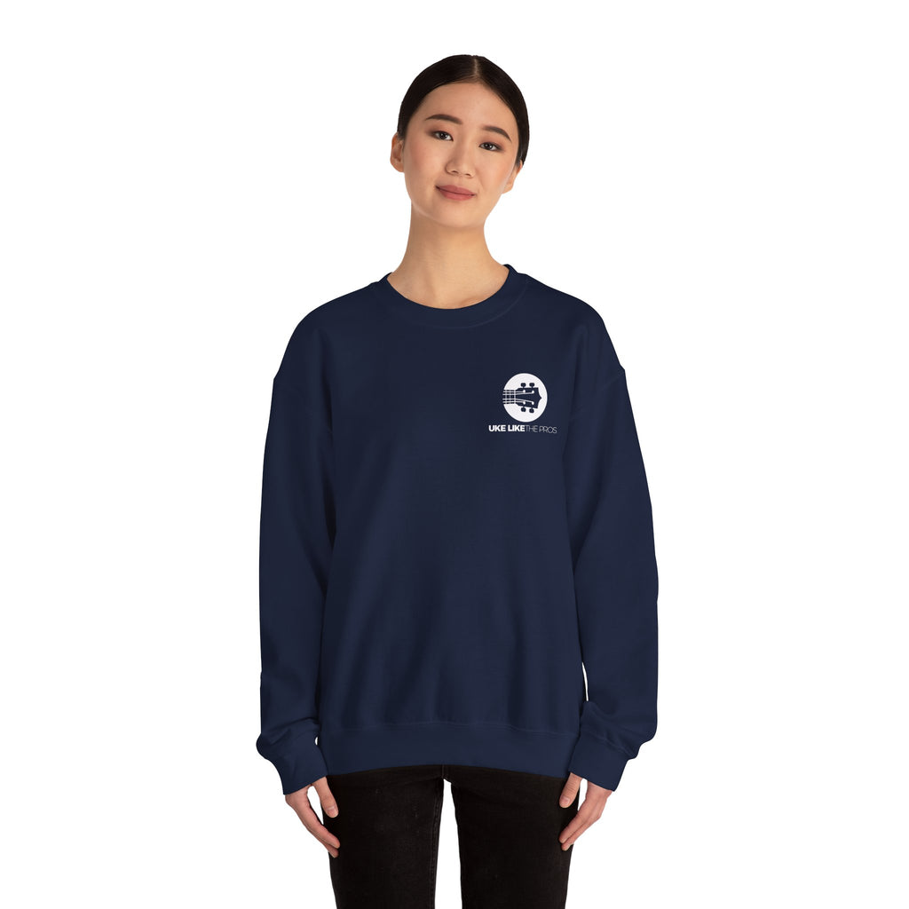 Stay comfortable while celebrating your passion with the official Uke Like The Pros Sweatshirt. This classic crewneck is the perfect layer for practice, performance, or everyday wear, featuring the iconic white Uke Like The Pros logo displayed clearly on the front.