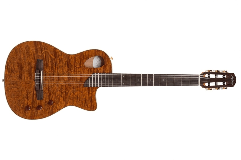 The Angel Lopez Sherry CE is a masterfully designed nylon-string guitar that blends traditional classical aesthetics with modern performance features. Featuring a stunning flamed cedar top and a chambered mahogany body, this instrument produces a warm, resonant tone that remains lightweight and comfortable for long sessions.