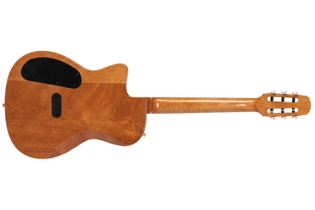 Because the body is chambered, you can enjoy a rich acoustic character while minimizing feedback during amplified performances. Additionally, the mahogany neck meets the body at the 14th fret, providing easier access to higher registers compared to standard classical builds.