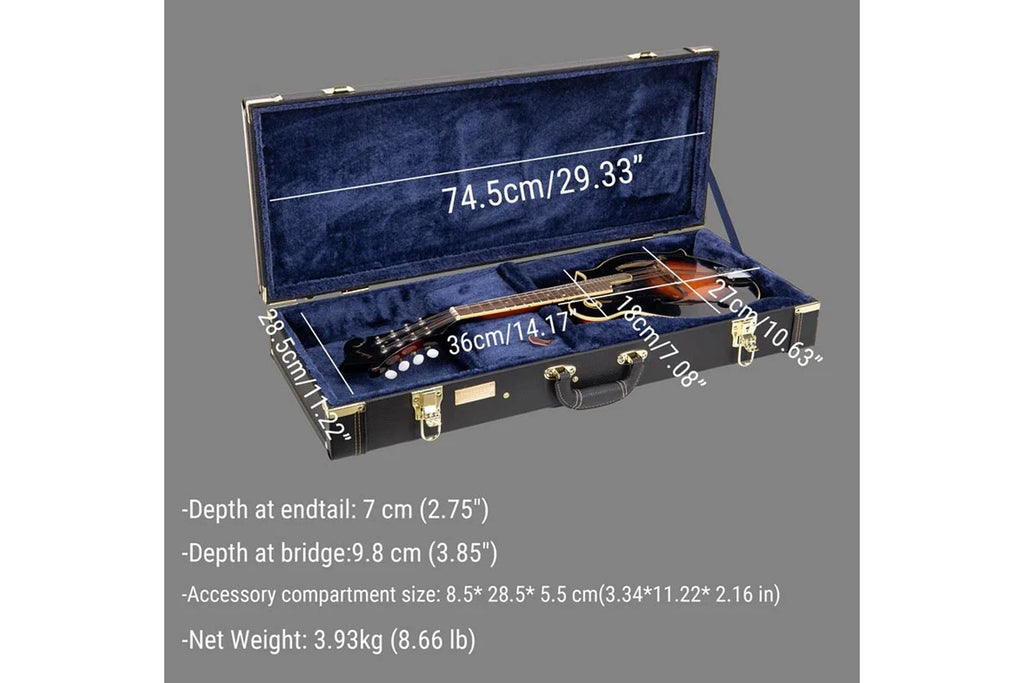 - Additional Features: The case includes foam blocks on the upper lid to secure the neck and the endtail of the mandola.