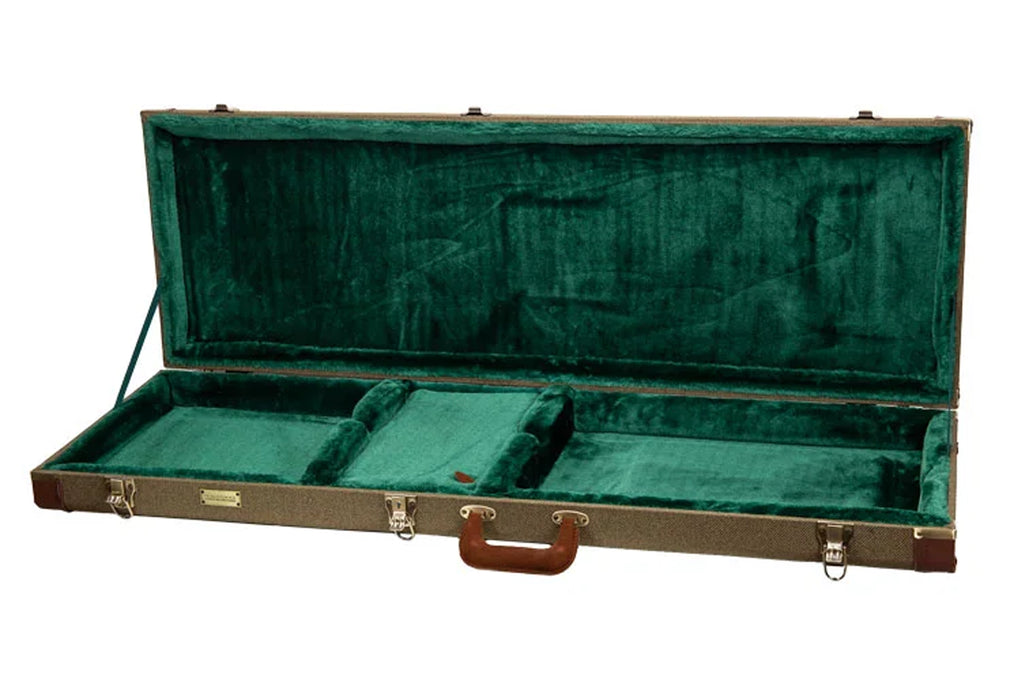 This Crossrock CRW720B Electric Bass Case includes two removable padding strips for a perfect fit. Furthermore, brass rivets protect the bottom from dirt and abrasions. A thick leather handle offers a textured grip for comfort during daily use.