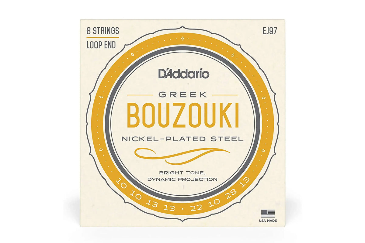 D'Addario's EJ97 strings are designed for use with 8-string Greek bouzoukis of various scales. The unwound strings are made from plain steel and the wound strings are nickel wound.