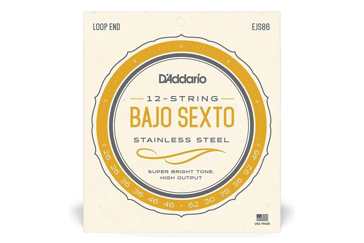 D'Addario's stainless steel Bajo Sexto set delivers a super bright tone and a magnetic reponse that is compatible with instruments that have electromagnetic pickups for amplification.