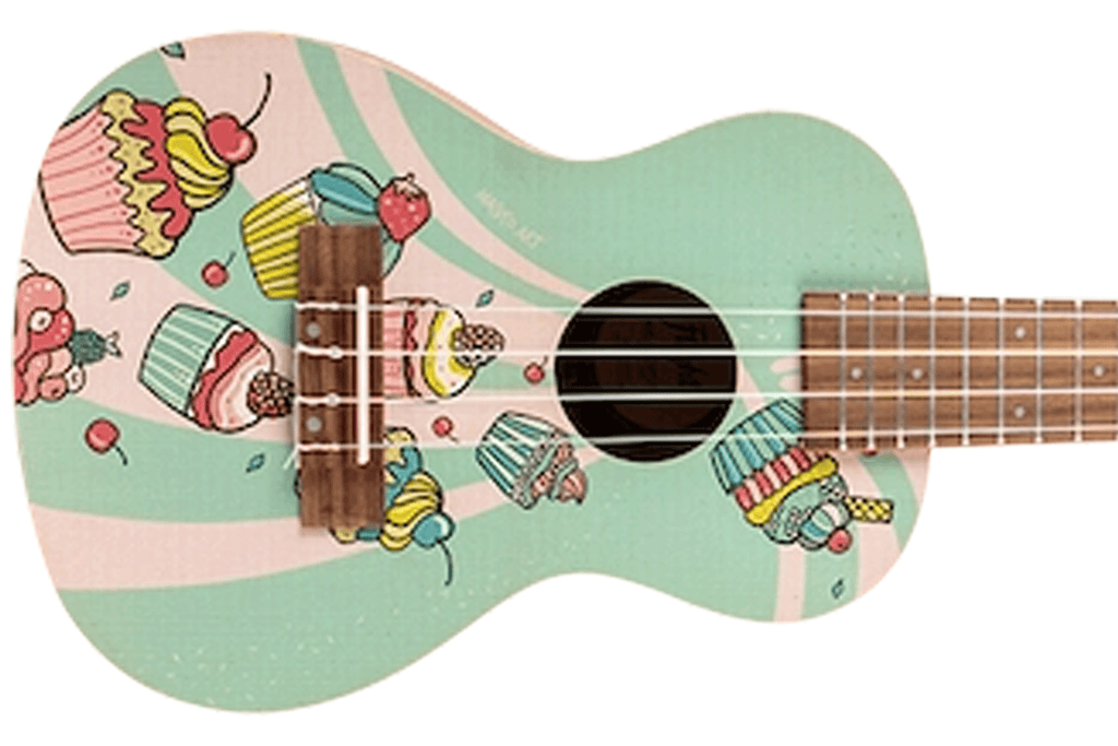 Whether you're performing at a party or surprising someone special, the Flight AUC-33 Cupcake Concert Ukulele is made to celebrate. It includes thoughtful details such as front position markers, a padded gig bag, and an instructional booklet. Designed for players who love personality in their instruments, this ukulele delivers dependable sound and a joyful visual flair that stands out every time.