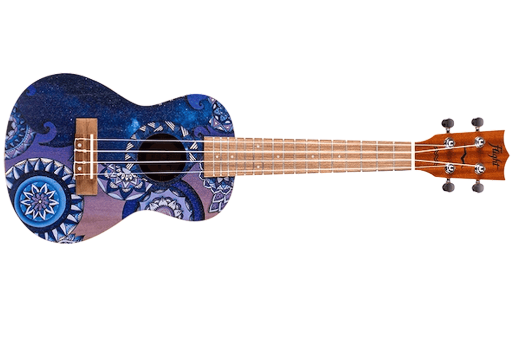 While the artwork is breathtaking, Flight ensures that quality remains the top priority by using premium laminate mahogany for the top, back, and sides. This choice of tonewood produces a warm, strong sound that resonates beautifully during any performance. Consequently, you receive a visually stunning instrument that sounds just as incredible as it looks.