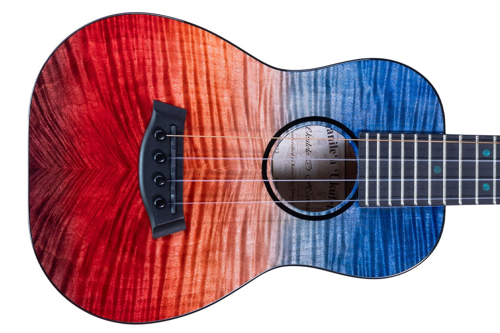 Firstly, step into a world of rich sound and stunning design with the Kanile'a 'Ilikai Stained Concert Ukulele. In addition, featuring a dazzling red-to-blue stain on a flamed maple top and quilted maple back and sides, this ukulele is crafted to turn heads.