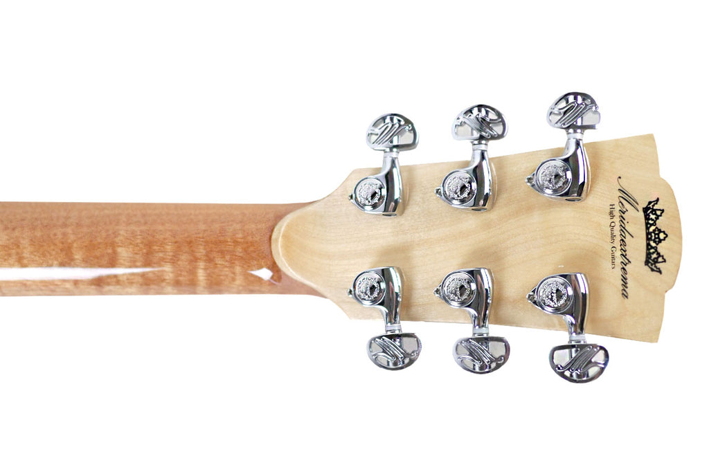 The Mérida JULIET-EQ Dreadnought Acoustic-Electric Guitar includes a Fishman ISY-201 pickup, so you can plug in with confidence during live performances. Chrome Mérida design tuners provide reliable tuning stability, and premium D’Addario EXP16 strings enhance tone and durability. The Omega laminate fretboard and bridge offer dependable structure, while maintaining smooth playability.
