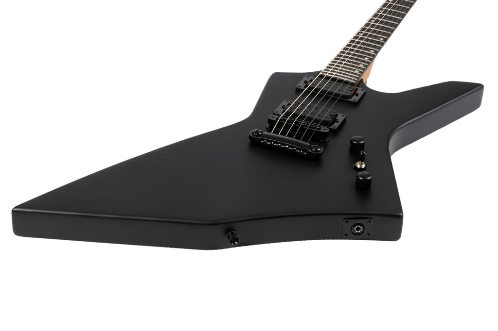 The Spira X-400 MBK Satin Black Offset Electric Guitar delivers a modern playing experience above all thanks to its offset body crafted from roasted poplar with a smooth satin black finish. The Canadian roasted maple neck with a Modern D profile feels fast and comfortable because it is paired with a 24.75" scale length and a 14" fretboard radius for confident control.