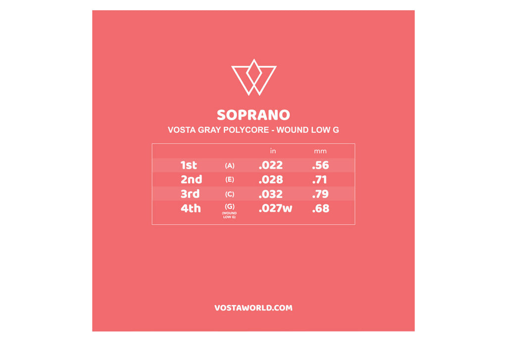 Vosta Grey Polycore Soprano Ukulele Strings (G-C-E-A Tuning) - Wound Low G