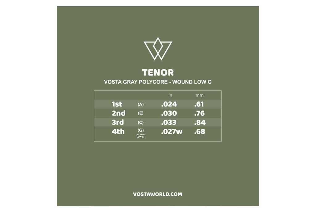 Therefore, the inclusion of a wound low G supports players who prefer a defined low end within a tenor ukulele setup. Compared to mixed or unspecified sets, the clearly listed gauges help ensure compatibility and informed purchasing decisions. Finally, the Vosta Grey Polycore Tenor Strings offer a straightforward, well-documented option for players who value material transparency and exact specifications.