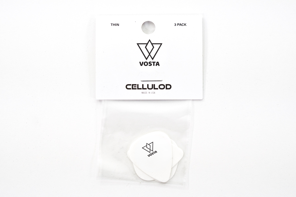 Each pack includes three elegant white picks, making it easy to keep extras on hand. Their lightweight nature ensures they won't weigh down your playing, while the durable material guarantees longevity. Upgrade your musical experience with Vosta Thin Celluloid Picks, the perfect accessory for guitarists of all levels.