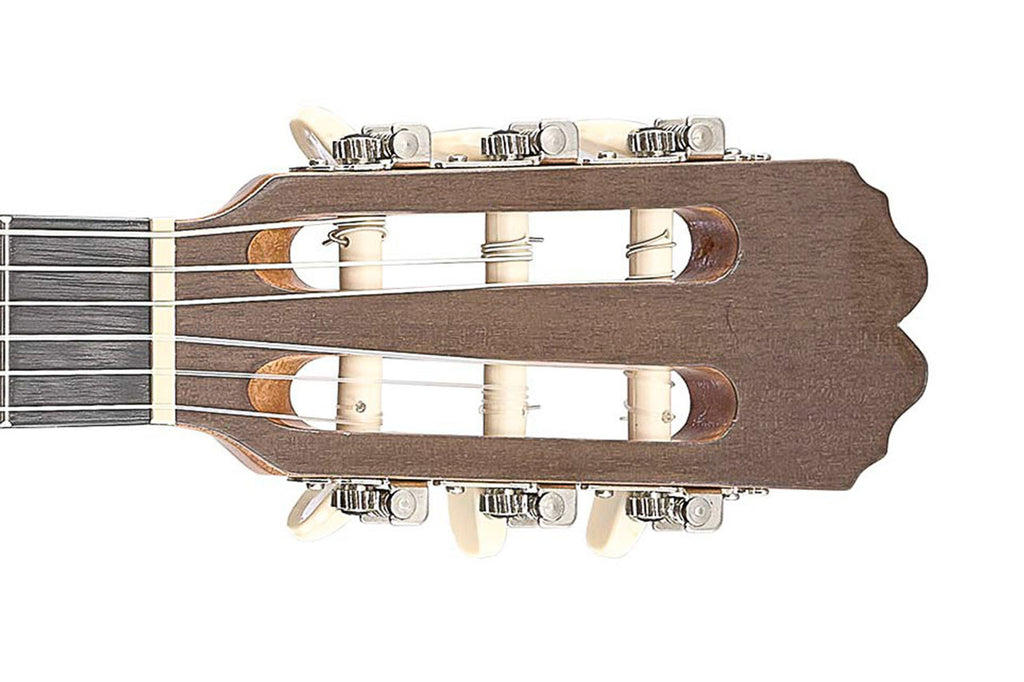 In fact, its overall length of 33.46" and scale length of 22.83" make it ideal for younger players or those with smaller hands. The mahogany neck with a kabukalli fretboard ensures smooth playability, while nickel lyre design tuners provide stable tuning as a result of their precise engineering. Above all, this instrument is designed to encourage new musicians to enjoy the traditional E-A-D-G-B-E tuning while developing proper technique.
