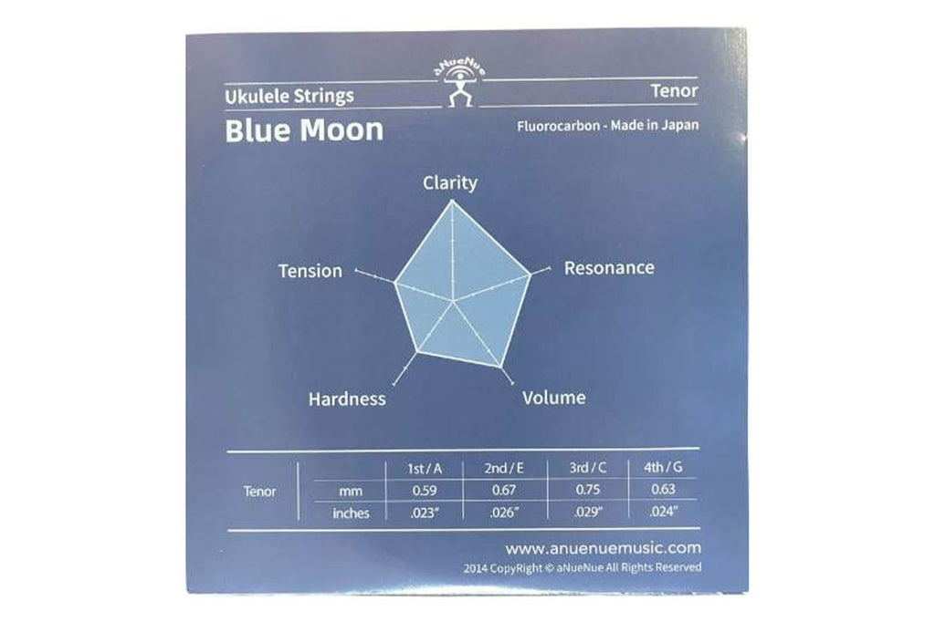 ANueNue BMT Blue Moon Tenor Strings offer premium fluorocarbon for rich tone and excellent projection on tenor ukuleles. Moreover, each string is precision gauged: A (.023"), E (.026"), C (.029"), and High G (.024"). Because of this balanced tension, players enjoy smooth playability and consistent intonation across all frets.