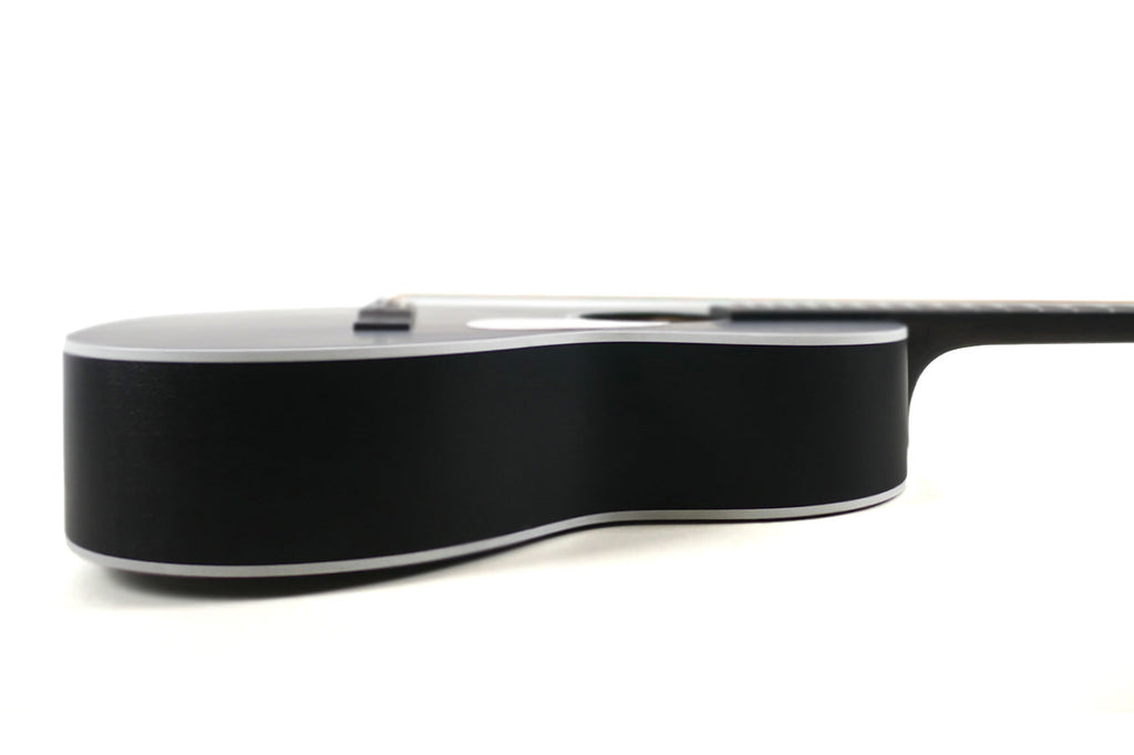 Furthermore, the rosewood bridge complements the fretboard’s smooth feel, and the E-A-D-G-B-E tuning ensures instant familiarity for every guitarist. To clarify, the combination of tonewoods, premium hardware, and compact body makes this guitar ideal for both beginners and seasoned players alike. Finally, the striking stained black finish sets it apart visually, so it becomes not only a reliable instrument but also a standout piece in any collection.
