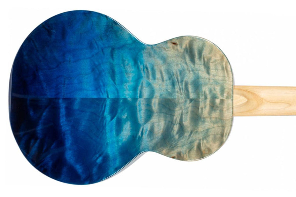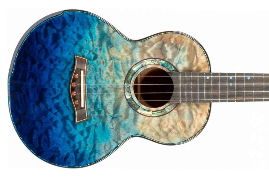 The Flight A10 FM 10th Anniversary Tenor Ukulele delivers stunning craftsmanship and vibrant tone from the very first strum. Firstly, its solid flamed maple top, back, and sides create a bright, articulate sound that projects with clarity. In addition, the blue dyed finish highlights the dramatic maple grain, so the instrument stands out on any stage.