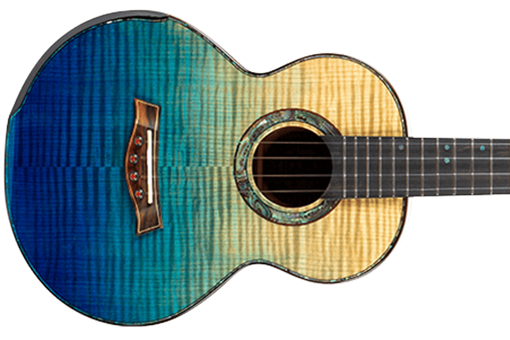 The Flight A10 FM Tenor Ukulele immediately impresses with its breathtaking faded maple finish, shifting from natural tones to deep blue for a showstopping visual effect. Since this model uses solid flamed maple for the top, back, and sides, it delivers clarity and projection that suit both fingerstyle and strumming.