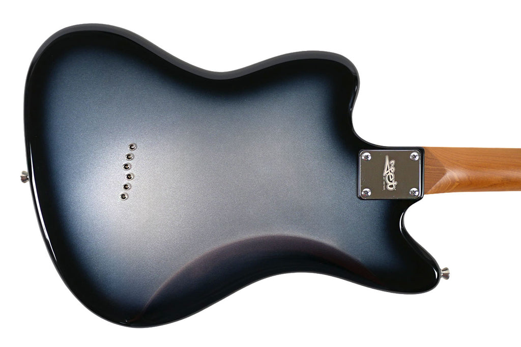 The Jet JJ-350 MB Baritone Moonburst Electric Guitar is built to deliver deep, resonant tones that inspire creativity, and it combines premium tonewoods with high-quality hardware for outstanding performance. The roasted poplar body, maple neck, and rosewood fretboard deliver stability and smooth playability across all 22 frets.