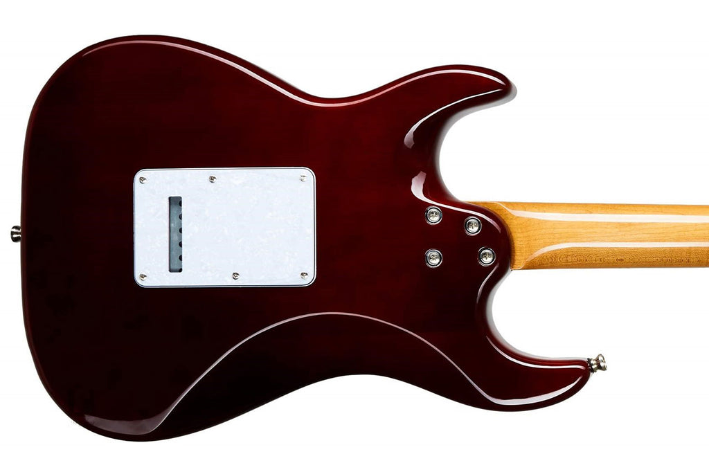 The Jet Transparent Black Stratocaster Electric Guitar includes an HSS ceramic pickup configuration that delivers wide tonal versatility, furthermore giving you expressive control through a 1V/1T layout and 5-way switch. The tremolo bridge invites dynamic vibrato effects, for example adding character to leads and rhythm parts. Chrome locking tuners maintain tuning stability, therefore ensuring that the nickel-plated steel strings stay responsive.