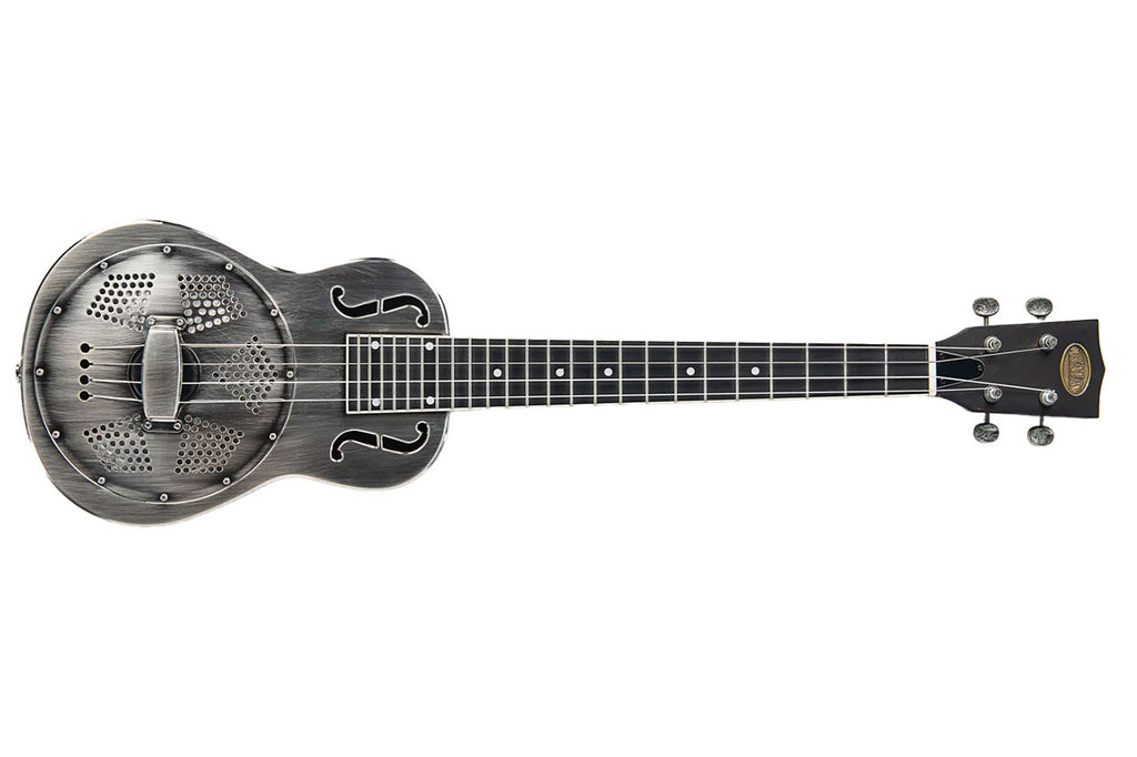 Above all, the aluminum cone and bell-brass cover work together to create impressive volume, and they likewise respond quickly to dynamic playing. In addition, the mahogany neck and high-pressure laminate fretboard offer smooth playability, and the bone nut with a maple saddle ensures stable tuning. Finally, its included padded gig bag keeps the Kala Resonator Brushed Nickel Baritone Ukulele protected during travel.