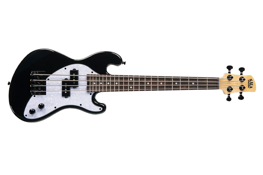 Kala UBASS-SB-BK-PRL-FS Jet Black Solid Body Fretted U•BASS w/ Pearloid Pickguard