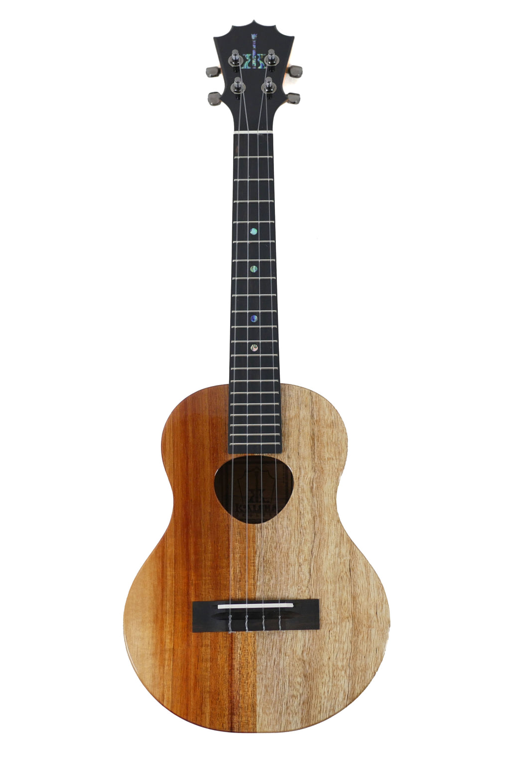 The KoAloha KTNP-00 Naupaka Tenor Ukulele delivers a stunning balance of tone and beauty because it is crafted with a rare blend of solid Hawaiian Koa and Mango woods. The high-gloss finish highlights its distinctive Naupaka half-and-half design, and then the ebony fretboard and bridge ensure durability as well as smooth playability.