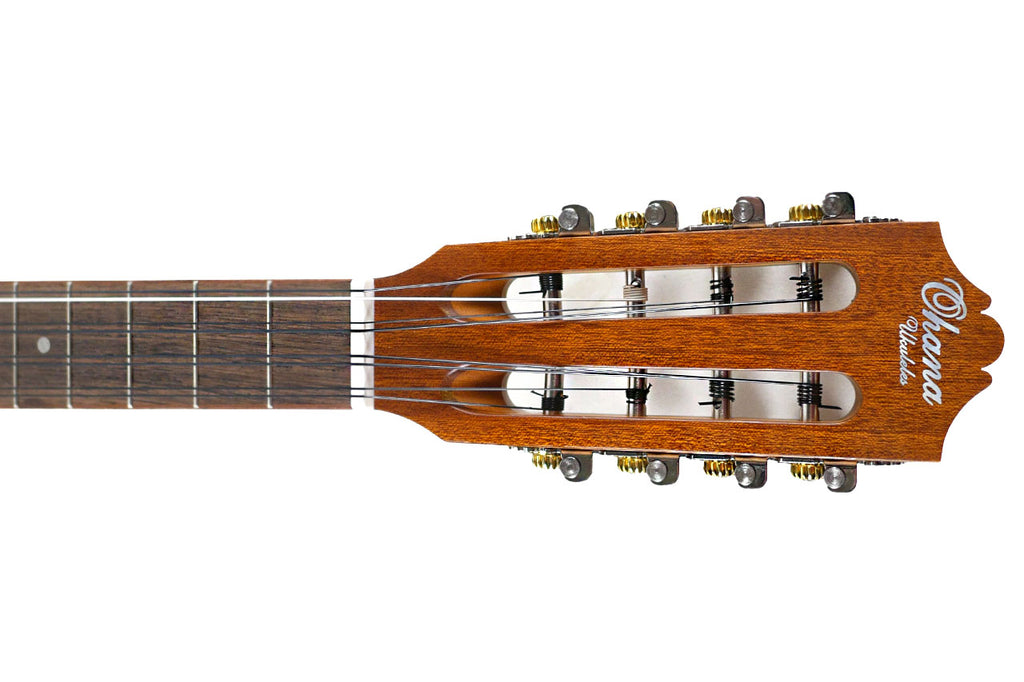 Ohana BK-70-8 8-String Baritone Ukulele delivers a bold, resonant voice firstly by combining a solid spruce top with solid mahogany back and sides for balanced projection. The Ohana BK-70-8 8-String Baritone Ukulele feels refined furthermore thanks to its smooth satin finish and traditional slotted headstock that enhance both comfort and appearance.