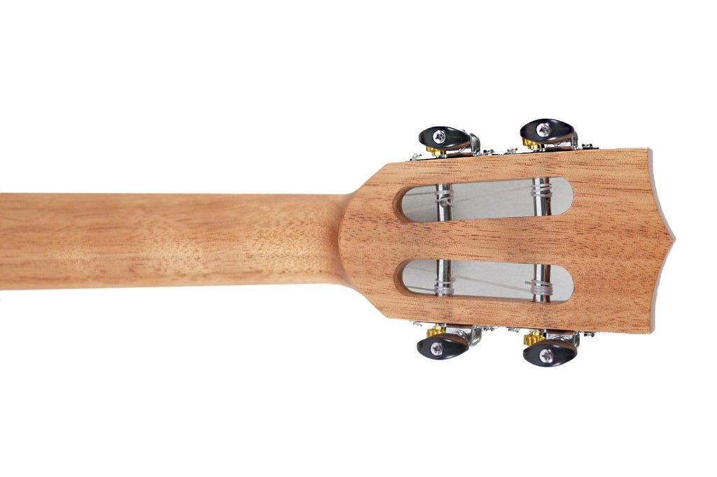 In addition, the satin finish allows the natural wood grain to shine, creating a sophisticated, timeless look. Grover open-geared tuners ensure stable tuning, and pearloid dot fret markers on the 5th, 7th, 10th, and 12th frets offer precise navigation during play. Above all, the concert size and 15” scale length provide a balanced feel that is comfortable for extended sessions.