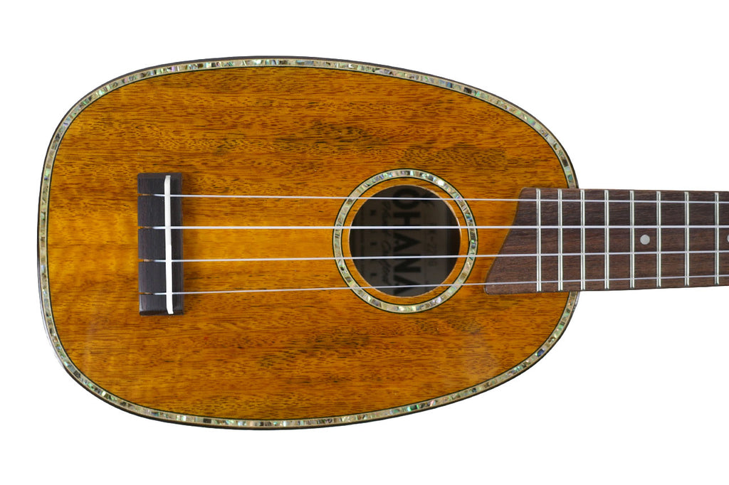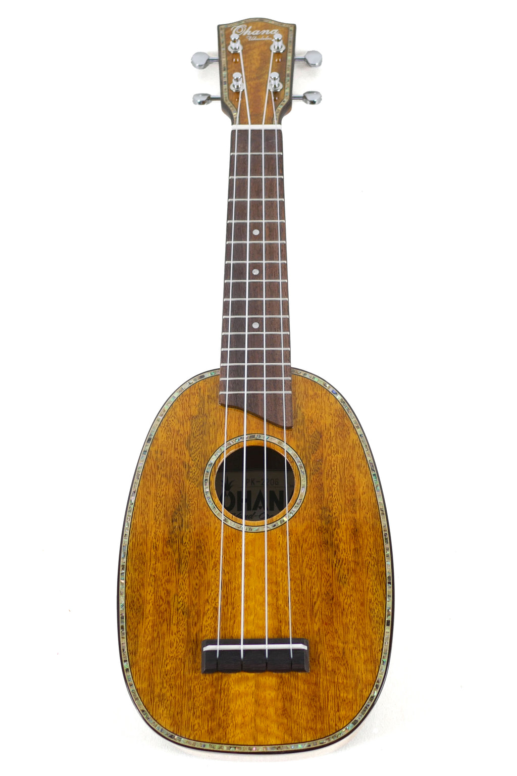 Firstly, the Ohana PK-220G Pineapple Soprano Ukulele brings sunny vibes because it’s crafted entirely from solid mango wood. Despite its compact size, the gloss finish and abalone accents make it a standout, and then some.