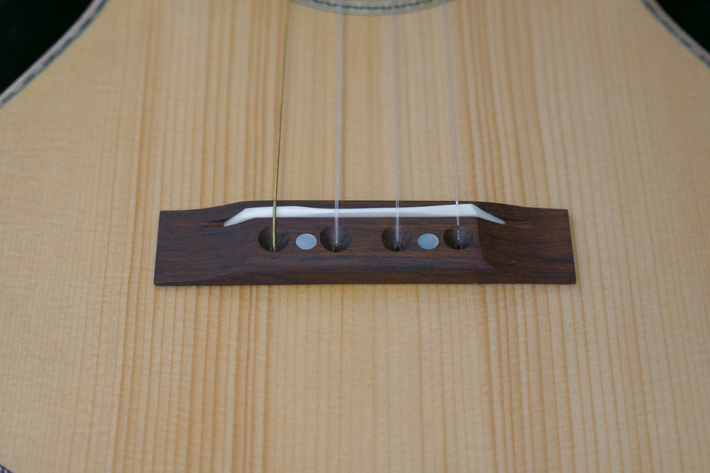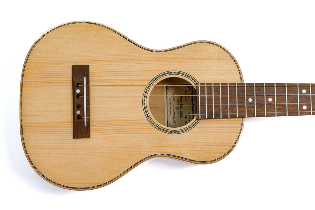 This is a Pepe Romero Jr. Grand Reserve Tenor ukulele made in 2023 from Pepe's private stash of Moon Spruce and old stock Brazilian Rosewood. The Moon Spruce top was harvested on the New Moon in December 1999. The Brazilian Rosewood is taken from Pepe's private old stock.