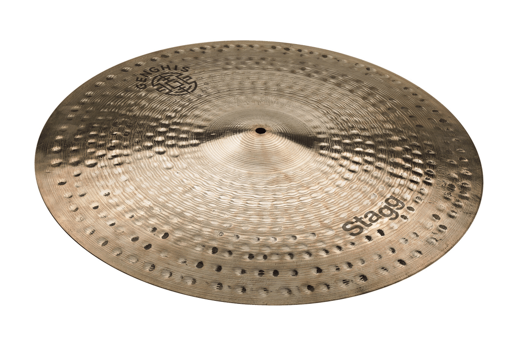 Furthermore, the Stagg GENG-RM21R 21" Genghis Medium Ride Cymbal is designed to provide a long sustain and a lush wash while simultaneously maintaining solid stick definition. This combination allows for clear rhythmic patterns that do not get lost in the overtones.