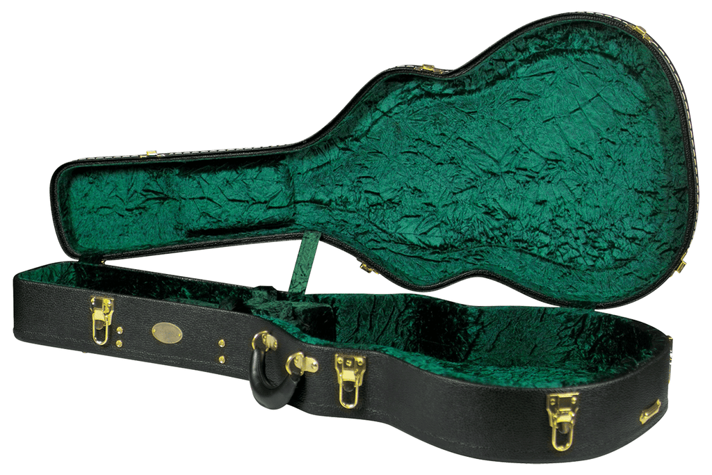 The interior is shaped for 000-size guitars and lined with green crushed velvet. Foam padding is placed in key areas to keep your instrument secure and cushioned.