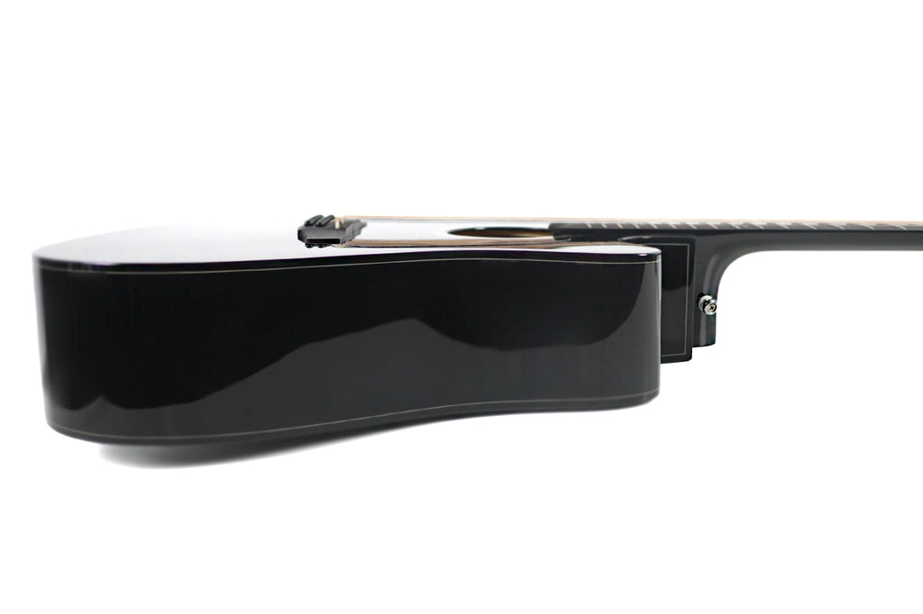 The mahogany neck feels smooth, because it supports comfortable hand movement across the fretboard. The ovangkol fretboard offers durability, and then it improves note articulation for cleaner chords. Bone nut and saddle increase sustain, therefore players enjoy a fuller tone. The Takamine GD30CE12 Black 12-String Dreadnought Guitar also features a Venetian cutaway, so accessing higher frets becomes easier.