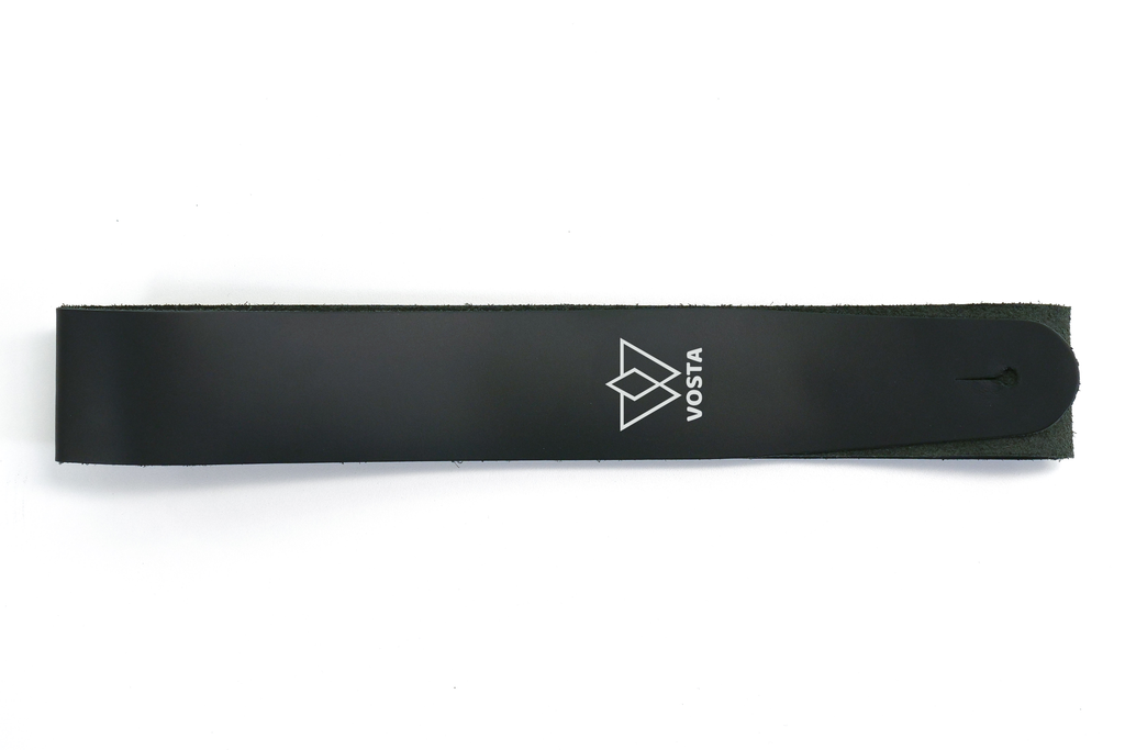 The Vosta 2" Leather Guitar Strap welcomes any player seeking unmatched durability and style. Crafted from genuine black leather, this strap bears a black-on-black guitar logo, whispering of quiet confidence and purpose.
